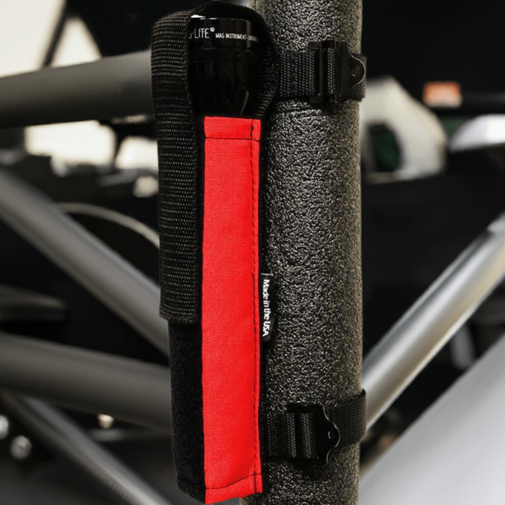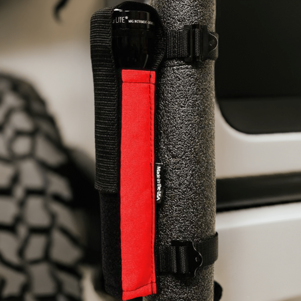 Introducing the highest quality, most thought out Multi-Cell Flashlight holder in existence. You could settle for a cheap Chinese holder that comes in black only with a tiny piece of 1" hook and loop that you pray is stitched on and won't fall off...or you could get our universal 2-cell, 3-cell, 4-cell holder, which is proudly Made in the U.S.A. - Did we mention, you have your choice of colors for no extra charge? That's right! Match your Flashlight Holder to the color of your vehicle, and/or any Bartact or Trek Armor seat covers and accessories. This fits both padded and non-padded roll bars, AND PALS webbing as a MOLLE accessory...so no matter how you roll, you're covered! Please scroll through all of the photos to see the capabilities.
